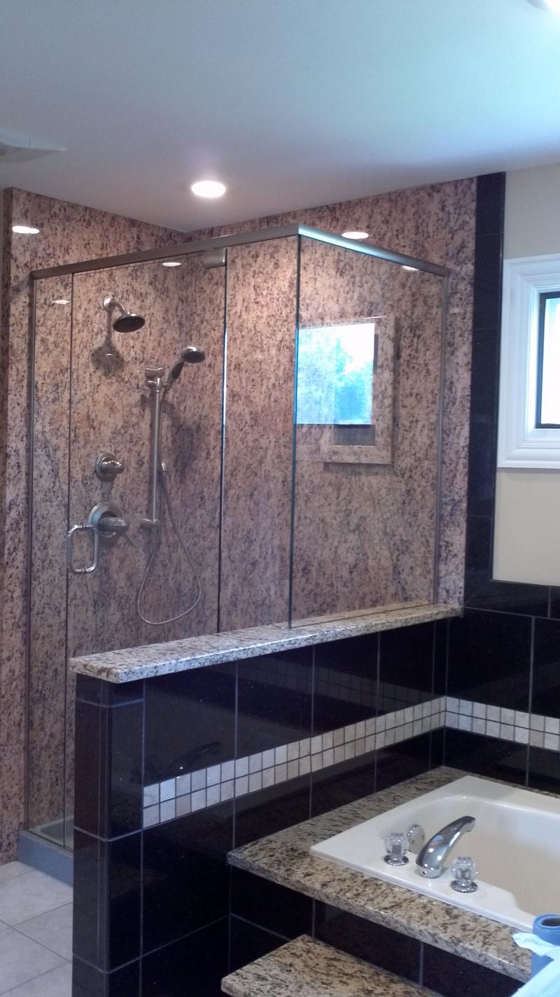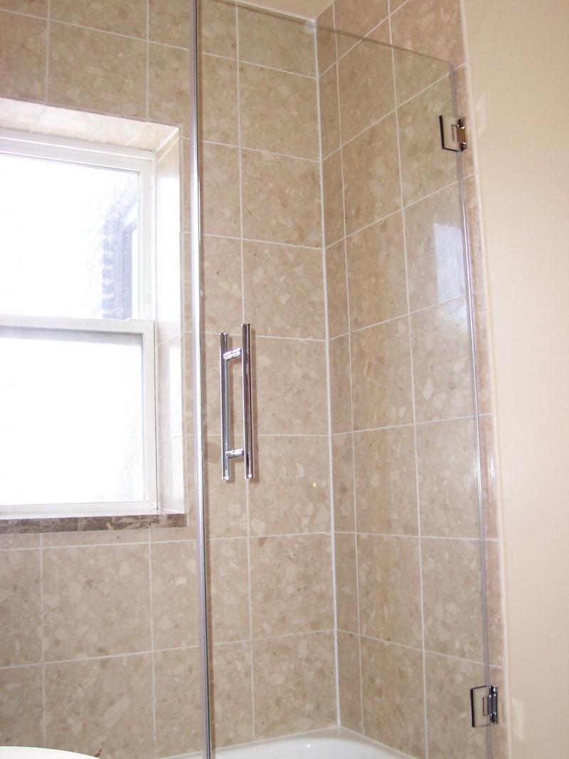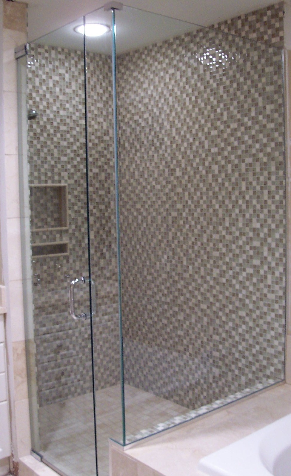 Custom tub enclosure made from 3/8" clear tempered safety glass.