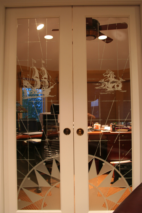 This custom design was made using 3/8" clear tempered glass and chrome hardware.