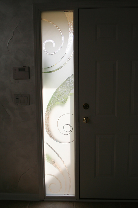 This is an inline door / panel design constructed using 3/8" tempered glass. Glass clamps support the small panel to give a better all glass look.