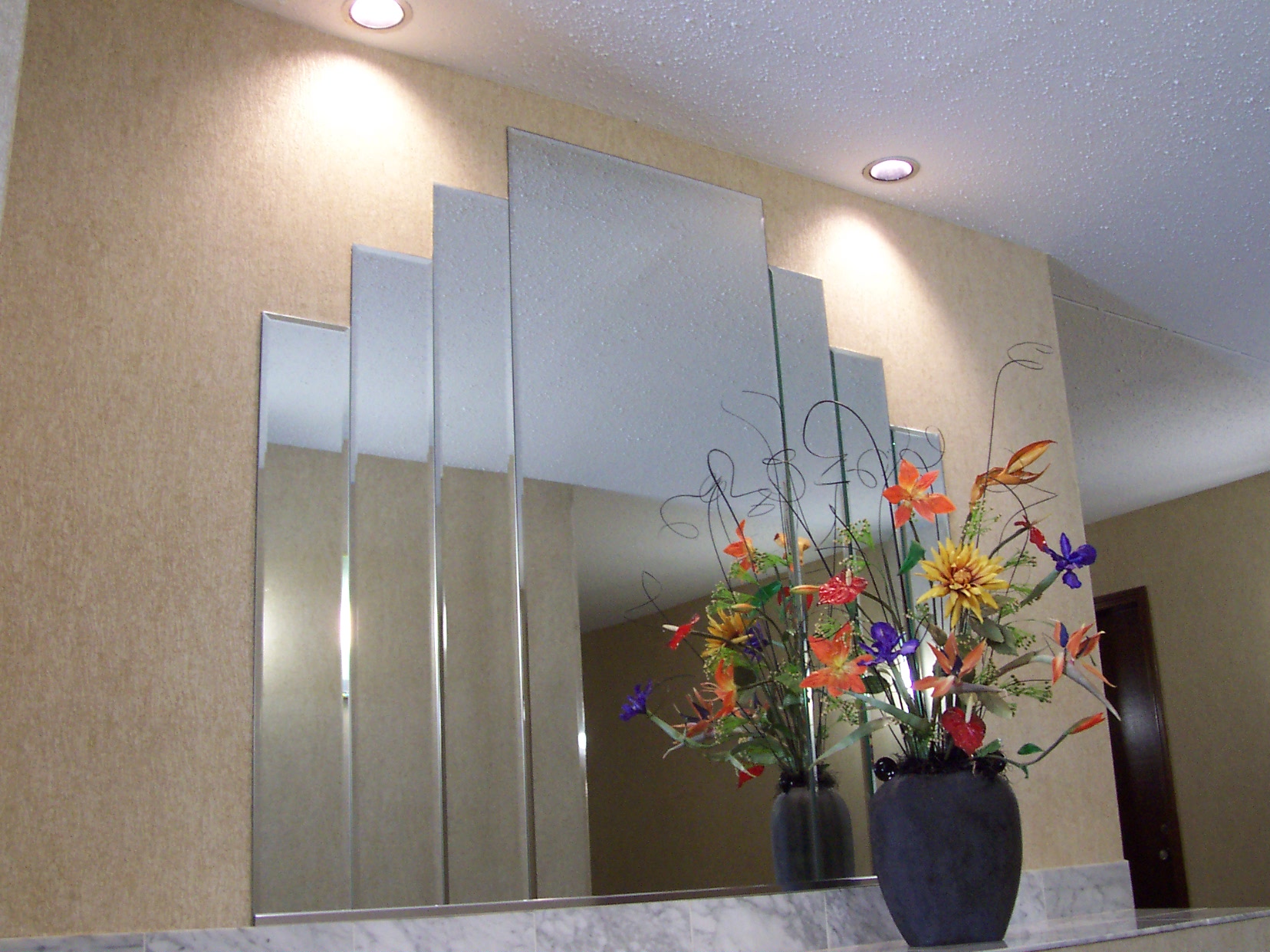 Seven piece 1/4 inch beveled mirror adds carachter to this hallway.